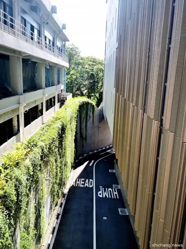数年前,南洋理工大学决定在此山谷内建造一座供艺术、设计、媒体学院使用的教学大楼,于是由建筑规划公司 CPG Consultants 以“无建筑的建筑”的概念建了这栋ADM大楼,设计融入自然的建筑体。