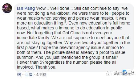 这位网民批评谢世儒还在强词夺理,并质问当学校都已全数进行居家学习,后者凭什么可以在公开场合进行“教育”。他也质疑蔡瑞隆既非谢世儒的直系亲属,两人也不住在一起,为何两人能够一起出现在同一场合?当局应该杀鸡儆猴,针对谢世儒和随行人员开出罚单。