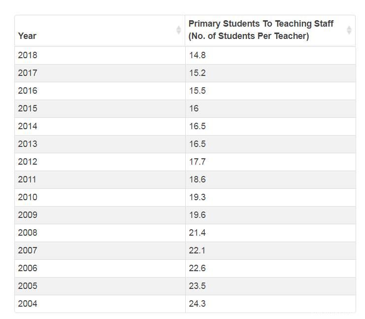 新加坡班型较小,老师关注度比较高。据2018年更新数据,政府小学师生比例为1:14.8;政府中学师生比例为1:11.6。