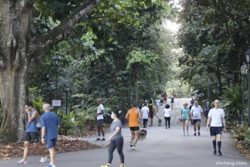可是如果去公园里看看,也许得出完全不一样的结论,虽然大部分人现在都在家办公或上课,但由于独自或与同住的人到外散步和运动被允许,所以封城后的周末一些地方出现人潮。植物园的国家胡姬园和雅格巴拉斯儿童花园等部分公园设施虽已关闭,仍有不少人举家大小前来晨运和遛狗,一些植物园常客认为人数比平时还多至少三成。