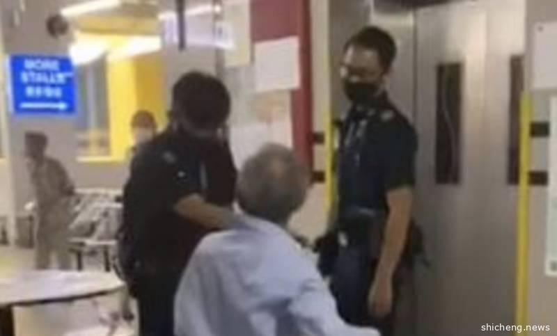 一名大叔在小贩中心激动地拆开围着小贩中心座位和桌子的塑料膜,大闹了2小时,惊动警员到场,期间这名男子对警员破口大骂,也与小贩中心清洁阿嫂差点打了起来,而原因竟然只是他想在这里坐下来。