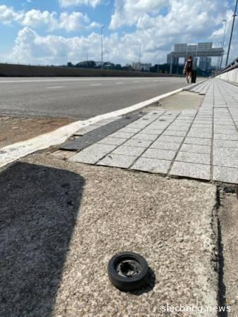(新山15日讯)行动管制令期间,柔佛长堤随处可见损坏的轮子。
