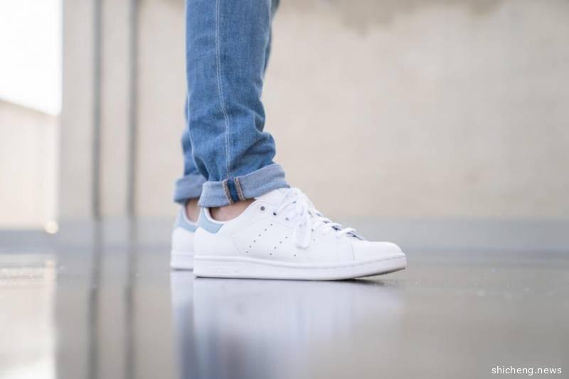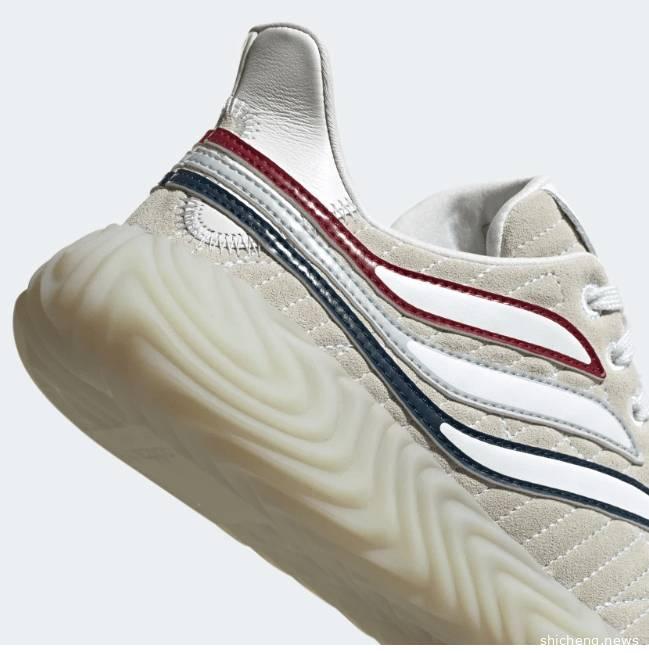 两侧的三条纹以及后跟处的三叶草Logo点缀鞋面的细节元素