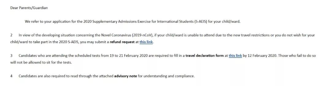 新加坡教育部2月6日宣布,受新加坡政府目前有关新型肺炎的入境限制政策影响,部分考生来自中国大陆地区或者到访过中国的考生将无法参加S-AEIS考试。