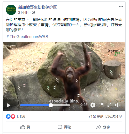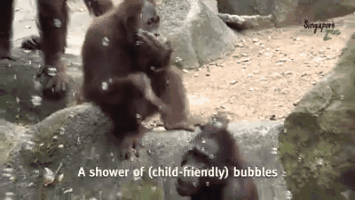 新加坡野生动物保育集团Facebook上分享园里猩猩玩泡沫的视频当泡泡慢慢飘落时猩猩们像孩子般伸出手尝试接住泡泡却只见泡泡消失不见呆萌模样相当可爱