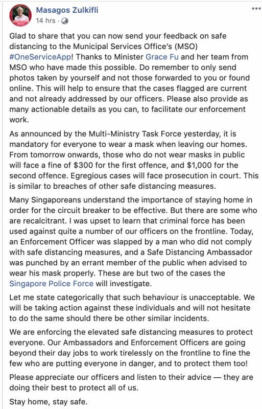 对于近期执法人员遭受攻击的事件,环境及水源部长马善高也在Facebook上表示,任何人都不可以对这些执法人员和安全距离和保洁大使使用暴力。