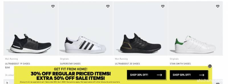 所有阿迪达斯的促销品再打5折,原价品则打7折。