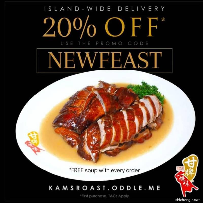 现在外卖Kam’s Roast就能享有一碗免费的热汤,全岛配送费减少20%。