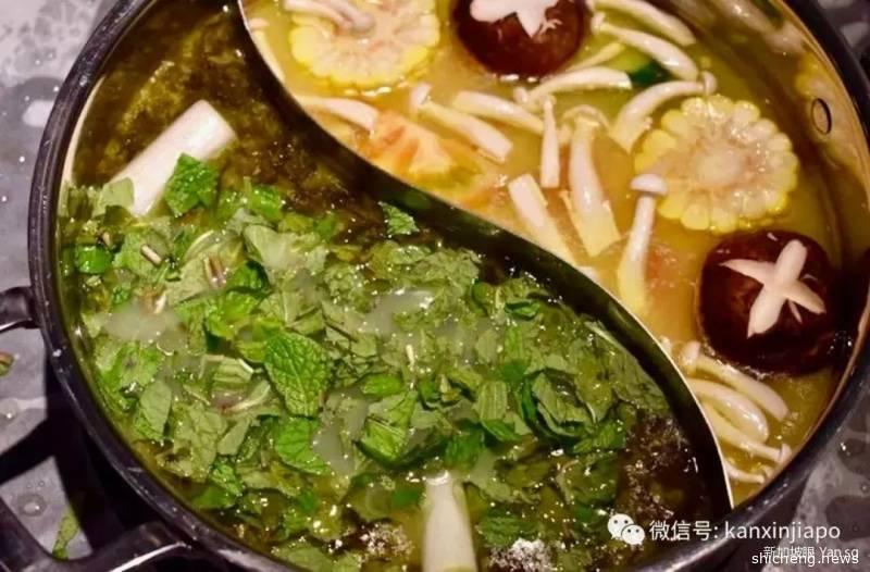 除了常见的鸳鸯锅、川味麻辣锅,这里还有新加坡独一份的招牌酸菜薄荷锅以及养生鱼骨锅。撑起一勺汤,喝起来口齿醇香,带着鱼的鲜味与薄荷的清凉。养生鱼骨锅,里面则配了各种菌类,重在品尝生鱼的原味。