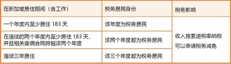 在连续的两个年度内,在新加坡累计居住183天或以上,并且相关雇佣合同跨越该两个年度的外籍人士。