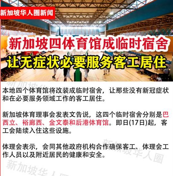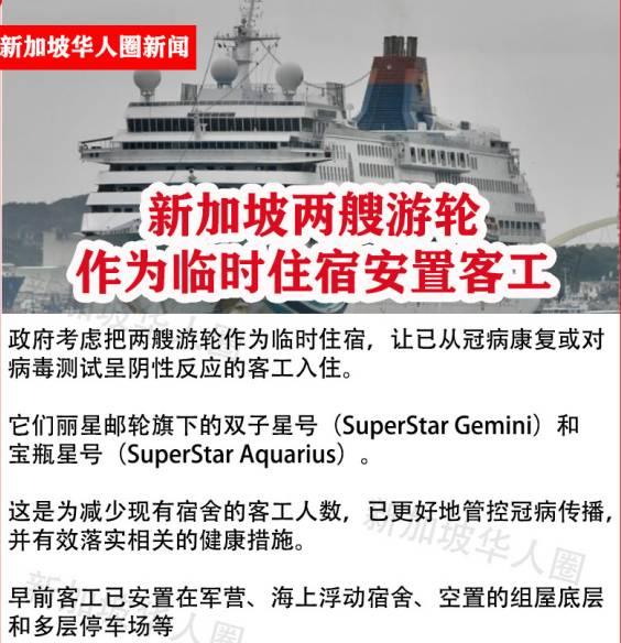 此外新加坡也安排了体育馆和邮轮来安置客工住所