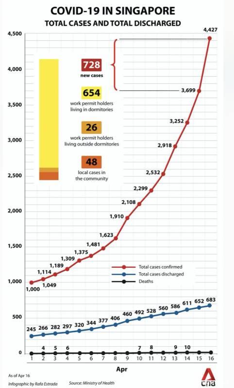 4月15日,单日新增447人。 4月16日,单日新增728人。