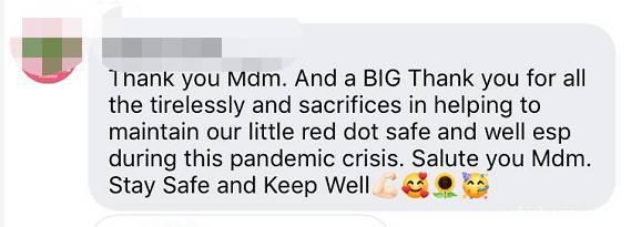 “谢谢警姐!很感谢那些不知疲倦地为这个小红点(控制疫情和安全)做出奉献的人!向警姐致敬,确保安全并且健康!”