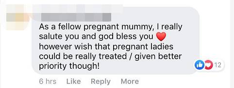 “作为一个准妈咪,我真的很敬佩你,上帝会保佑你的。希望这个怀孕的女士可以被优先给与照顾!”