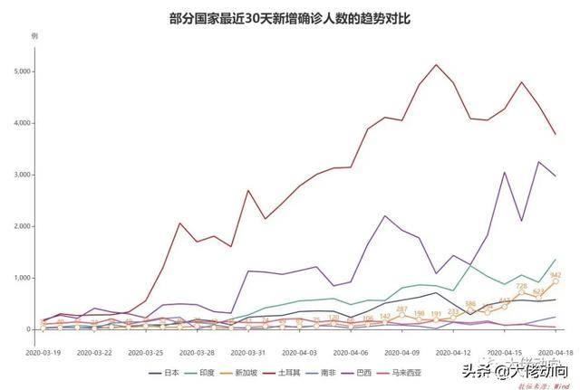 从新增趋势看,4月13日至19日,新加坡新增确诊人数分别为386、334、447、728、623、942,近7天环比增速的平均数为29.7%,远超日本的1.8%、印度的11%、土耳其的-3.85%、巴西的21%和马来西亚的-11.7%,增势冠绝全球!