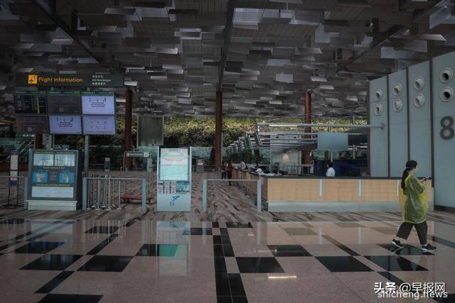 一名身穿防护服的旅客4月9日在新加坡樟宜机场。疫情导致全球民航业与人员流动受严重冲击。(档案照)