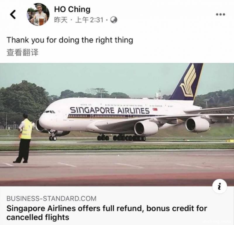 (图源:新加坡航空微博)
