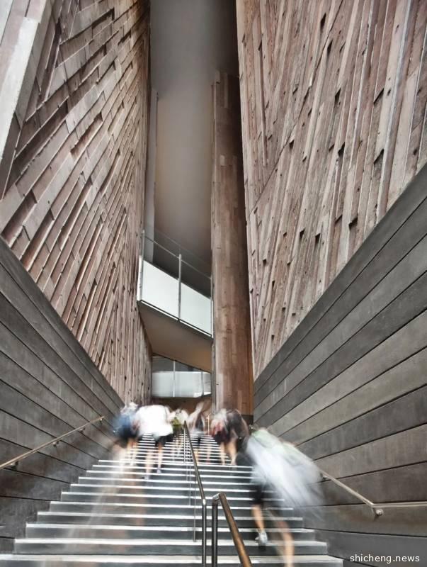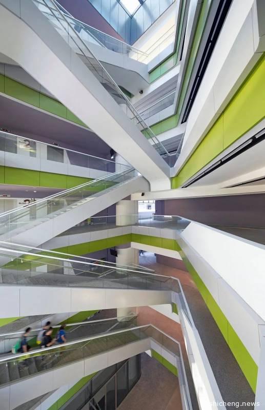 另外,SMU的Kwa Geok Choo法律图书馆也是他们值得一提的建筑,采用独特的建筑形式,让人联想到珍珠。它战略性地被放置在最高点,象征着“灵感灯塔”,旨在照亮SMU法学院学生的生活。