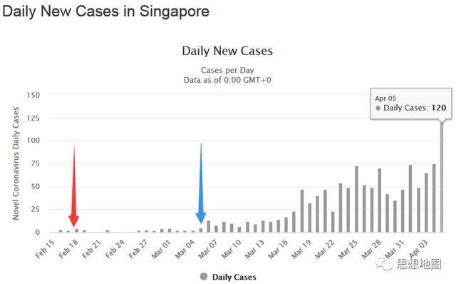 4月5日,新加坡新增确诊第一次突破100人,达到120人,仅有4起外部输入,116个本地,其中66个未知来源。