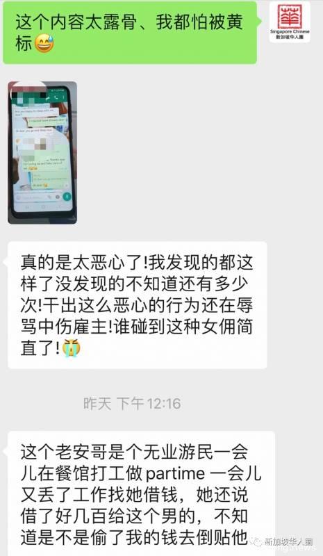 没眼看!趁雇主入睡!新加坡一女佣偷钱私会情郎过夜!超露骨对白