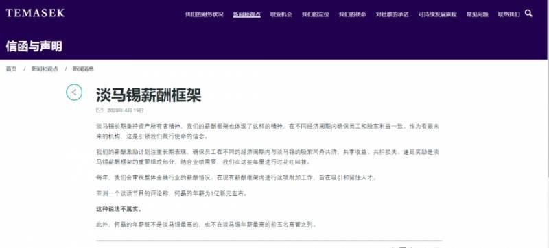 此外,何晶的年薪既不是淡马锡最高的,也不在淡马锡年薪最高的前五名高管之列。”