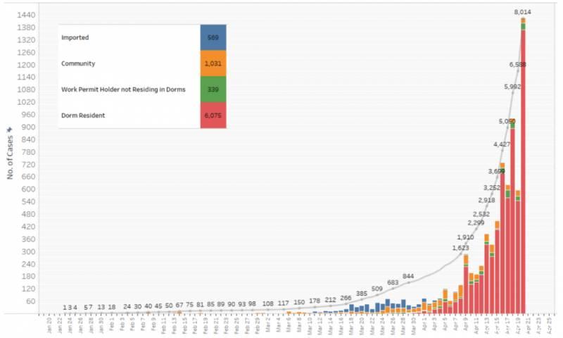 昨日新增病例1462例,首次破千,也是有史以来单日增长最高的一次。新加坡累计病例达8014例,每百万感染人数亚太最高!