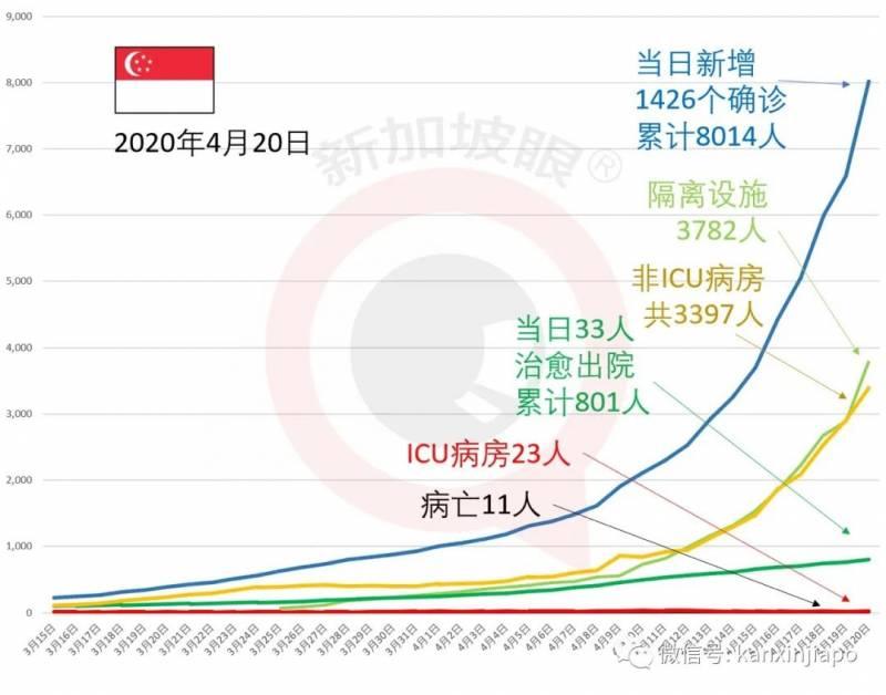 昨天新加坡无新增死亡病例,累计死亡11人。有33人治愈出院,累计出院人数为801人。有23人在加护病房,比前日增加一人。