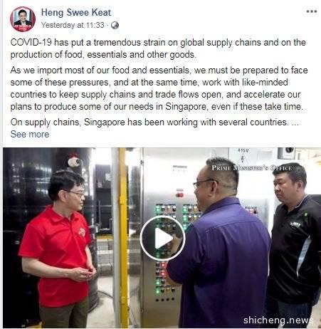 王瑞杰在面子书贴文提醒新加坡国人准备好面对食品和必需品供应链造成的压力。
