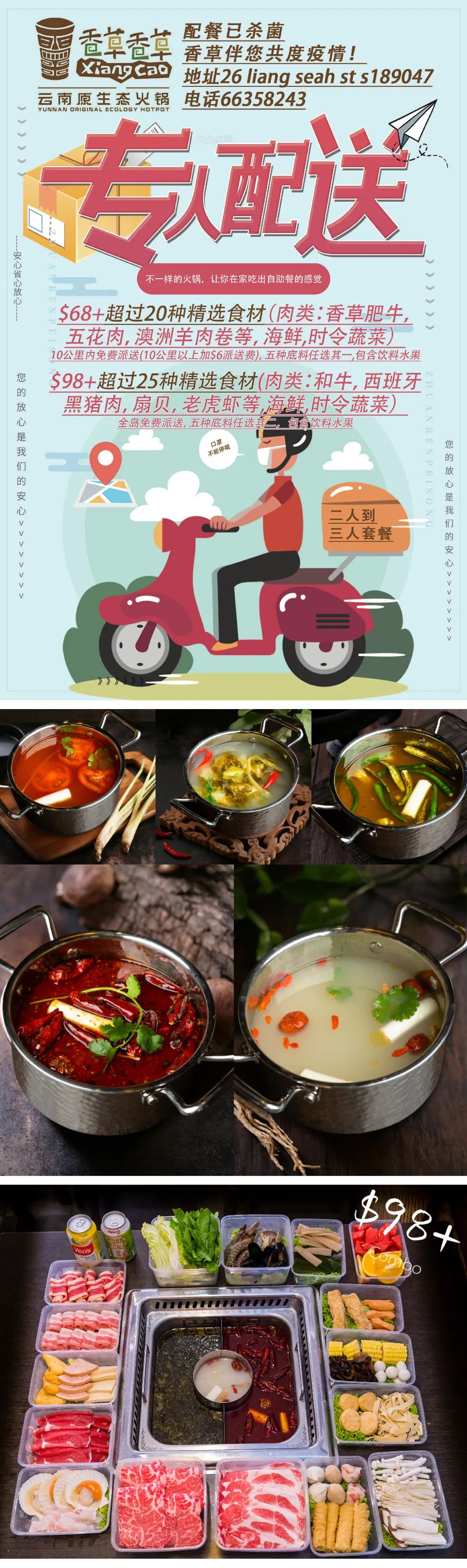 促销:拍照发朋友圈,facebook并tag 香草香草云南火锅,可在下次订餐享有5元优惠折扣,和10元武士烧烤优惠券
