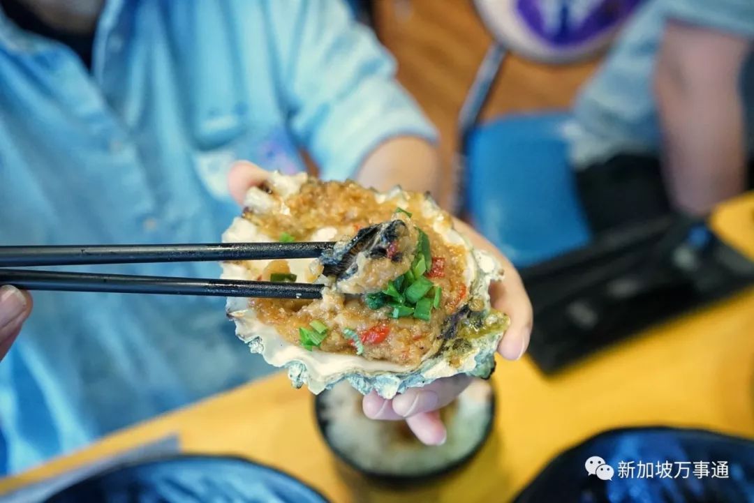 特制的蒜蓉清香微辣却不呛口,把生蚝的肥美衬托到了极致,旁边的湖南妹子吃完了蚝肉还把剩的一点点蒜蓉汁拌进米饭里,吃得之陶醉。万事通默默的,也学了她的样子,美味不容错失一滴啊!
