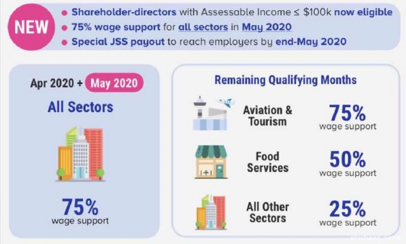 延长原有的雇佣补贴计划(Jobs Support Scheme)多一个月至5月,为所有行业的在职新加坡公民与永久居民提供的75%薪金补贴。