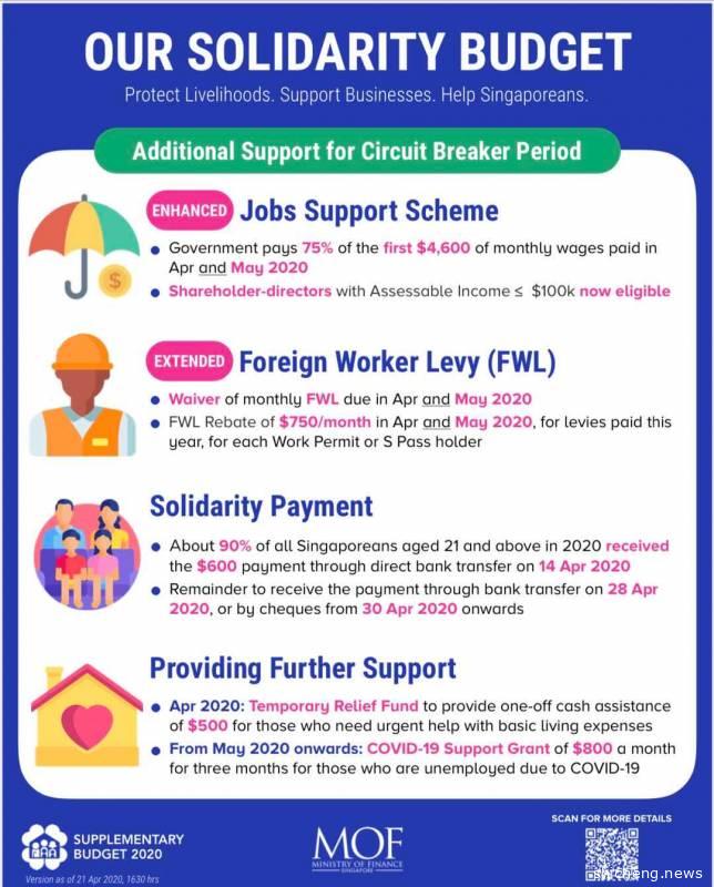 另外,“短期援助配套”从5月开始,为受新冠疫情影响而失业的人,提供每月800新币,为期3个月的援助。