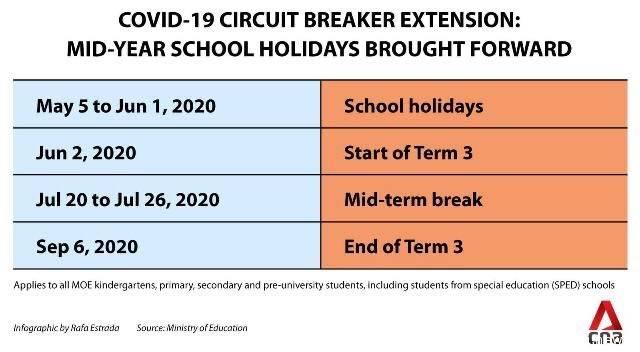 新加坡教育部很快也也宣布,因为阻断期延长,教育界需要做出的调整:
