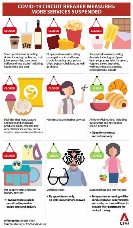 "新加坡将实行更加严格的“断路器”措施,所有人必须留在家里,除非出门购买食物和必需品,且不要全家人出门购买食品。我们必须尽可能降低人际接触,保护自己,保护家人,保护社区。"