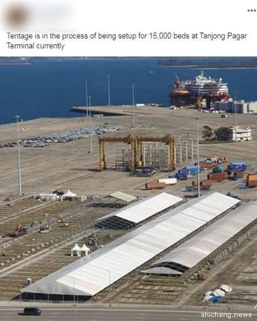 该国一名网民于周三(22日)早上在面子书上载一张照片,并发布简短贴文指出,新国的丹戎巴葛码头出现帐篷设备,该地正准备建设1万5000张床位。