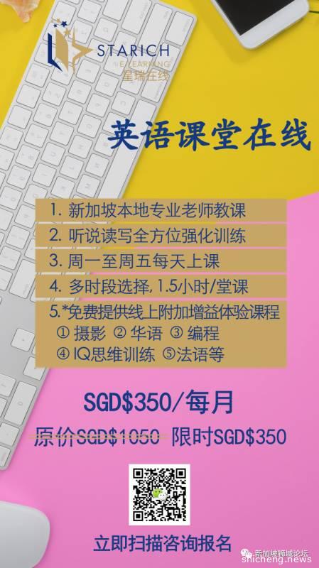 而我们所说的文末惊喜就是,因目前Covid-19疫情,星瑞教育特回馈社会,爱无界,永在线,原价$1050课程,目前每月只需$350新币,小组课程不超过10人,无论您在哪个国家或城市都依然可以参与我们的网课,周一到周五每天90分钟。