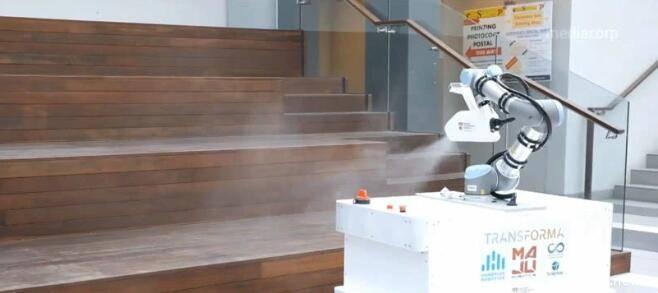 新加坡研究人员发明了一种消毒机器人,该机器人模仿人类的动作,可以在冠状病毒大流行期间帮助减轻工作过度的清洁工人的负担。