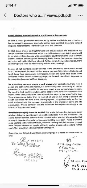 早在2月中旬的时候,新加坡出现了最早的“疫情吹哨人”——新加坡四名本地资深医生,联名签署建议大家戴口罩。