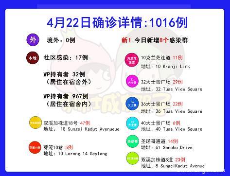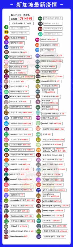 · 【KianTeck Dormitory】(Kian Teck Avenue 26)的感染群中还有12例与之相关,目前共有22例确诊病例。