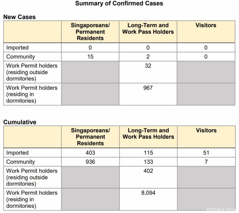 - 社区感染病例: 17起 (15人是新加坡公民或永久居民,2人是工作证持有者)