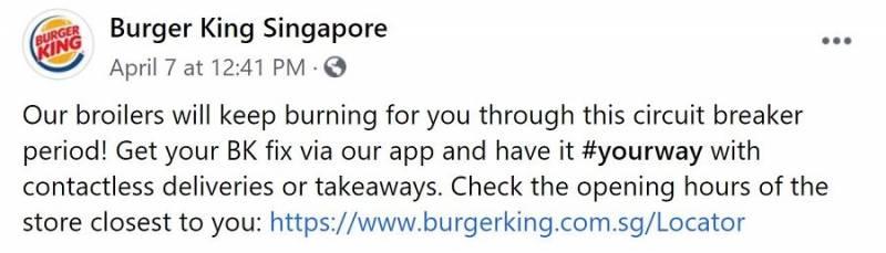 最新!Circuit Breaker延长期间仍然支持自提&外卖的餐厅List!KFC、Burger King、Subway等均继续运营
