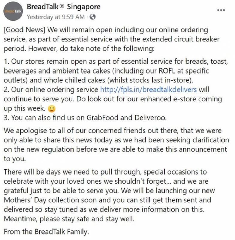 本周二刚刚宣布Circuit Breaker将延长至6月1日