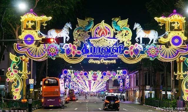 在屠妖节期间,小印度到处张灯结彩,夜晚降临之际,拱门之上霓虹灯闪烁,五彩缤纷。在小印度的各个街角空地之处,也陈列著具有印度风情的花灯展示,趁著月色一路走一路看,如落入人间的星光炫目迷人。