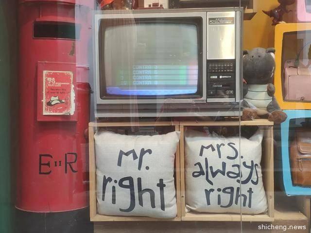 除了创意街景外,这里的店铺也趣味十足。当苏米酱看到两个枕头上分别写着“Mr.right”和“Mrs.always right”时,忍俊不禁。