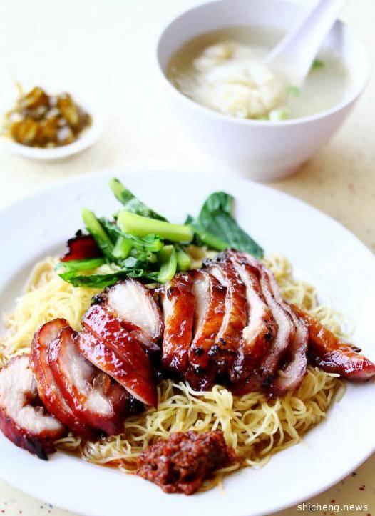 摊主引以为傲的是“不见天叉烧”。 所谓的“不见天叉烧”是以猪腋下的肉制成的,肉质嫩滑。 这摊的烧烤酱料不会下得太重,难怪许多人愿意排队吃他的叉烧云吞面。