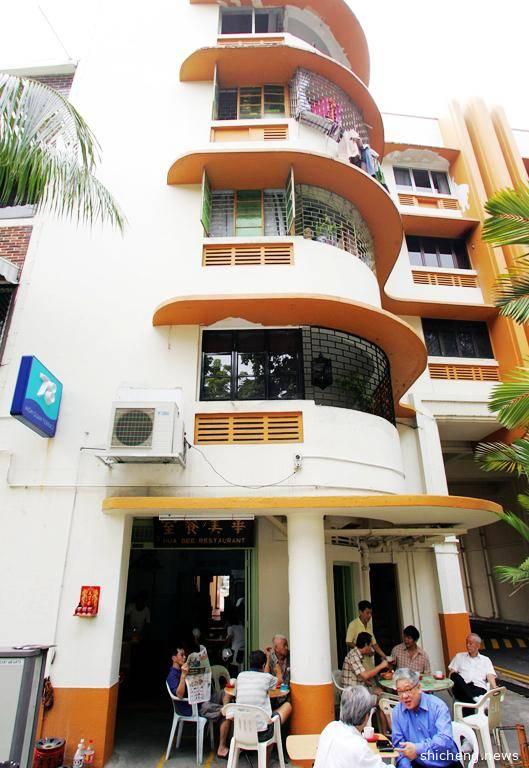 接下来,沿忠坡路出发,可以看到中峇鲁区的民居,各具特色,能够称得上艺术作品的建筑也很多。如忠坡路(Tiong Poh Road)上的几栋“飞机楼”;长长的楼身两翼对称,仿佛一架架即将起飞的飞机,就要载着里面的住户去周游世界各地。茂源台的建筑则楼高五层,是这里最高的建筑,因此这一带被称为“五楼”。