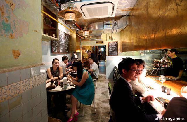 法式面包店Tiong Bahru Bakery。这里聘请著名法国面包师傅Gontran Cherrier为顾问,所制作的法式croissant号称是本地最好吃的。夜晚华美餐室正门封起,餐室内是富有现代感的酒吧和日式烧烤餐厅。