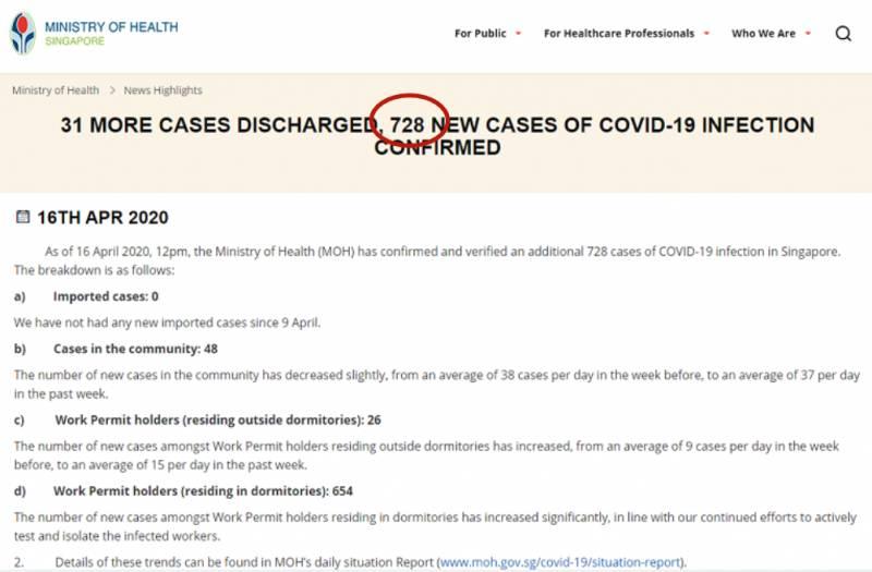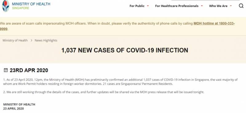*4月23日(昨天)新加坡卫生部下午3点多发布了新的确诊病患人数。