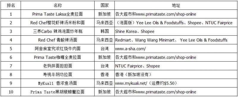 权威泡面评估网站The Ramen Rater近日公布了2020年10大泡面排行榜,此次新加坡入选的有3家,其中Prima Taste品牌的Laksa全麦拉面再次夺冠,这款泡面也是第5次蝉联年度最美味泡面头衔!