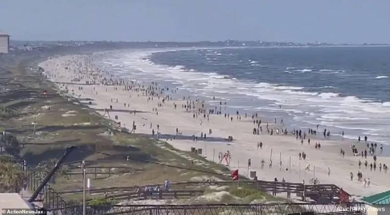 据说全美首个地区重开的当天,佛罗里达州Duval县的海滩重开之后......
